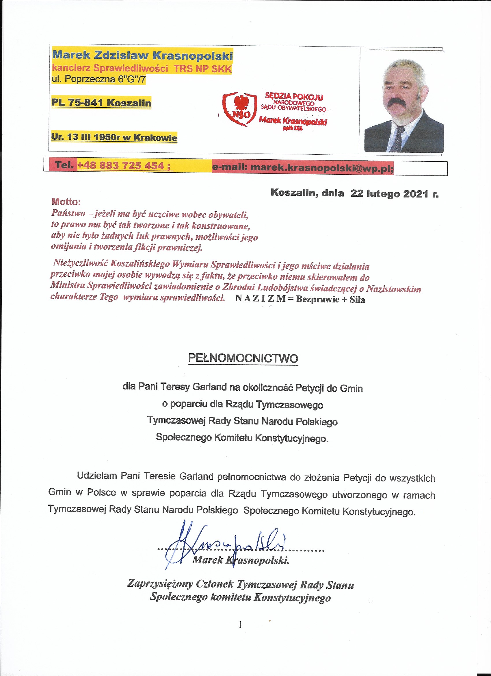 2021 02 22 Piotr Smolana Pełnomocnictwo-1.pdf 2021 02 24 Marek Krasnopolski Pełnomocnictwo-1.jpg D170 2021 02 23 Petycja ws poparcia dla Tymczasowej Rady Stanu NP SKK-1.pdf |